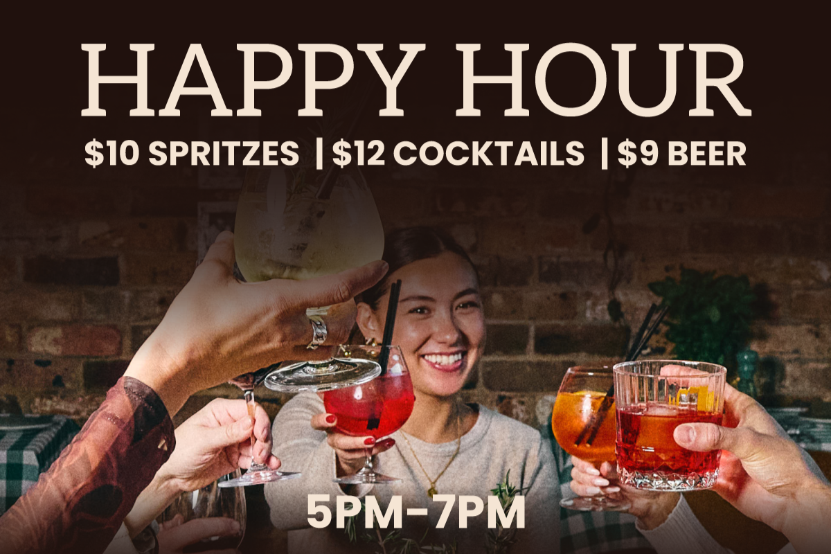 Unwind on the terrace with $10 Spritzes and $12 Classic Cocktails, available Monday to Saturday from 5pm–7pm. Pair your drinks with our signature focaccia sandwiches and indulgent truffle arancini – the perfect aperitivo experience.